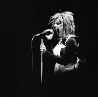 Die Rocksängering Nina Hagen stand bei ihren Auftritten meist alleine ganz im Mittelpunkt. Sie trat also meist solo auf. Ein Künstler der alleine auftritt nennt man