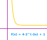 f(x) = a·b^(-k·x+c) + R: der Graph dieser Funktion fällt erst steil ab, flacht dann von links nach rechts gehend stark ab und wird niemals den Funktionswert 5 unterschreiten. Das ist hier allgemein erklärt.
