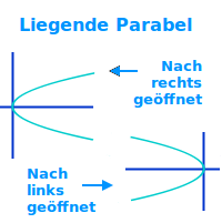 Eine Parabel in einem Koordinatensystem kann auch nach links oder rechts geöffnet sein, sozusagen also im Koordinatensystem liegen. Es handelt sich dann aber nicht um den Graphen einer Funktion. Man spricht von einer Ortskurve.